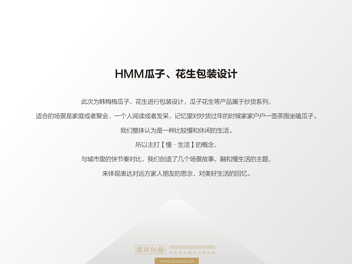 堅持做“有溫度的青春小零食”。并主打“韓梅梅”食品,倡導“休閑生活”的生活理念。